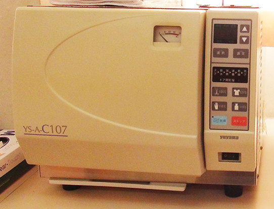 院内の器具を滅菌器で安全に処理し、清潔な状態で使用しています。院内感染防止に努めています。